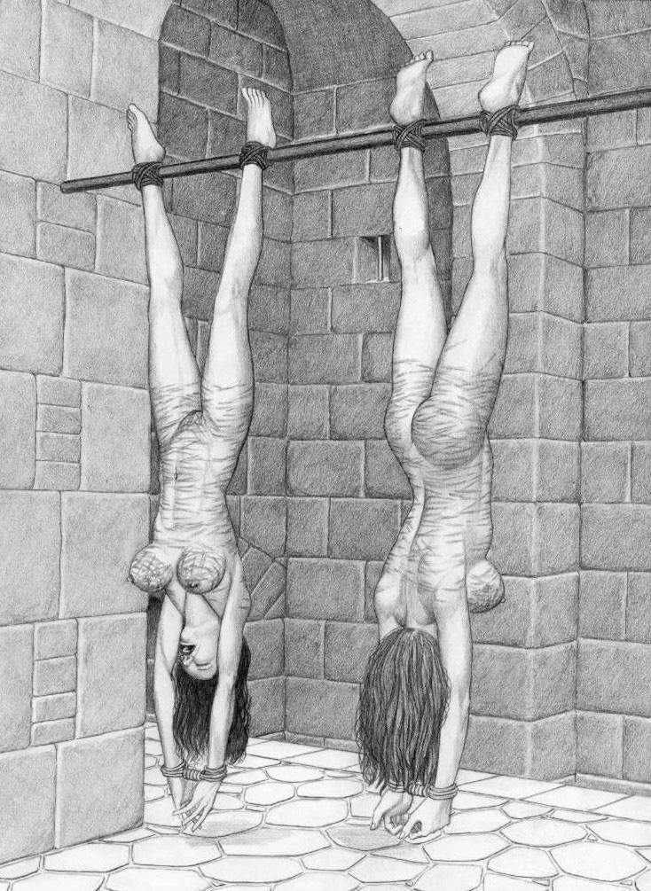 first noticed the girls feet tied to a bar. The girls were hanging upside