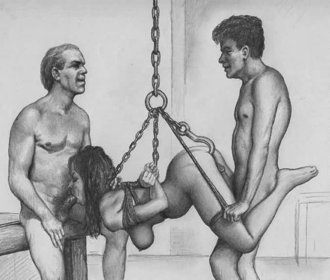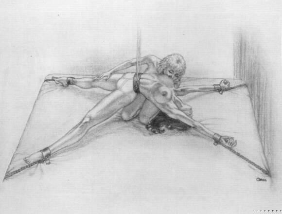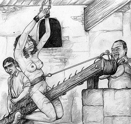 To Obey by Fire-Bird Chapter 85 "Double-Ended" Rebecca Thornton enjoyed the warmth of the sun. Currently it covered her entire naked body. The blades of grass beneath her tickled her sides and her buttocks. She felt her arms being stretched outwards above her head. A minute later some heavy thuds from the hammer as it pounded wooden stakes into the ground. Next she felt her legs being separated and the noise from the hammer repeated. She lay there watching little butterflies dancing over flowers in the breeze. She missed her freedom and was very jealous of the flying insects. A shadow from Jenny's head rested on Rebecca's face. She blinked a couple of times but continued to watch the butterflies. Jenny sat down beside her student who was stretched spread-eagle. She tossed the hammer to the ground and closed her eyes to the warmth of the sun. "Why do you do this?" asked Rebecca. Jenny opened her eyes and looked down. Rebecca wasn't looking at her but she also wasn't looking at the butterflies. "Because if I don't, I become a slave again, or worse, I will die." replied Jenny. Rebecca nodded then asked "How much longer have I got here?" "Long enough for you and your sister to be trained as slaves. Then you will be sold. After that, I don't know." Both women remained silent. A while later Jenny threw cold water onto Rebecca, shoved ten ice-cubes into her cunt and whipped her until she was unconscious. _______________________ Phoebe ignored the porter as he walked past her to John's office. She had come to learn that because she was John's secretary she received special benefits. One of them was that she couldn't be punished or tortured because John may have need of her office skills. That still didn't mean the male teachers and porters didn't want to fuck her at any given opportunity. Phoebe heard the knock on the door and the porter going in. There was some soft muttering and then the door opened again. John walked out with the porter close behind. "Phoebe, come with me." said John. Phoebe turned her confidential documents over and then followed her boss out of the room. The porter walked behind. She wanted to ask where they were going but John had made it very clear on her first day that she was to do what he said, not ask questions. So she kept quiet and watched John's back as they entered one of the classrooms. John stopped and turned to Phoebe. He took hold of her shoulder and moved her aside so he could talk to the porter. "Where is it?" The porter walked past Phoebe and proudly displayed a length of chain hanging from the ceiling. At it's end was a long metal pole. John nodded. "Okay, we'll see how good it is. You get Phoebe ready and I'll find a second student to help." Phoebe watched as John left the room. "Strip." Phoebe turned and the porter was standing there with some leather straps and chains in his hands. He looked up. "I said Strip." Phoebe removed her shirt, bra and cutoff jeans and let them fall to the ground. She walked over to the porter where he proceeded to connect a leather strap around her knees. She was made to bend over and her wrists were tied to the same strap. Also a leather belt was wrapped around her waist with a length of chain hanging. "What does this do?" asked Phoebe. The porter smiled. Phoebe realized most of his teeth were missing. She didn't care for him to smile again. "What does it do? ... You'll see. It's a surprise." The porter then took the metal rod and slid it up between Phoebe's inner thighs. The end pushed again her vagina. Noises from the door made the porter look up and he saw John returning with Karen Thornton. A few minutes later Karen was also strapped up in the same way as Phoebe. Both girls were bent over looking away from each other. Their long flowing hair slightly covered their faces. The porter pinched Karen's nipples a couple of times. "When you're ready." said John. It became obvious that John wanted to get back to his office. The porter lowered the chain in the ceiling and connected the to chains from the girls' belts to a hook. He then forced the girls backwards until the rod ends were in the girls vaginas. _______________________ Rebecca felt a sharp slap on her face. She tried to open her eyes and moaned as she was slapped again. She shook her head and look around. She was in a classroom. Her arms and feet had been tied behind a post which was anchored deep into the ground. The post was leaning forwards at an angle. Rebecca felt like she was nearly hanging in midair. The smell of sweat lingered in the room and the pole was smooth from having many bodies rubbing against it. Rebecca saw Jenny working away in the corner of the room. After a minute she walked over and placed a small three legged stool in front of Rebecca. She left again and returned with three candles. They were thin and about ten inches long. In her other hand was a very strong looking metal alligator clip with a length of small rope on the end and a gas lighter. "You're awake I see. Good. You wouldn't want to miss this bit of fun." said Jenny as she straddled the stool. She put down the items and just held up the clip. "Your task which you will accept is to have these three candles burn your most intimate spots until they're all gone. The candles that is, not your precious spots. Shall we begin?" Jenny stood up holding the alligator clip. She kicked upwards into Rebecca vagina. Rebecca screamed and coughed loudly. Jenny took the opportunity to attach the alligator clip to Rebecca's tongue. Rebecca moaned loudly around the clip as it dug into her tongue. But she watched in horror as Jenny lit the first candle. Jenny then pulled on the clip's rope forcing Rebecca's tongue outwards, and then waved the candle underneath. Tears streamed from Rebecca's eyes as her tongue sizzled and burned from the candle's flame. Jenny then held the flame beneath Rebecca's tongue until she started to see smoke spiraling upwards. Rebecca screamed and begged but it was to no avail. After