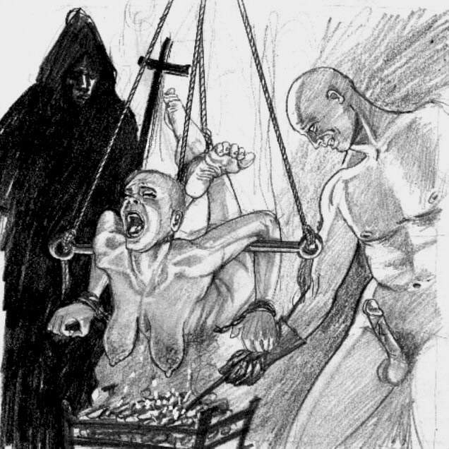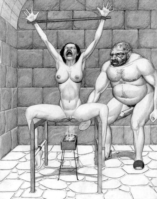 To Obey by Fire-Bird Chapter 80 "Slave letter." Brother Peter gorged himself on cakes and sweets during his morning tea. His mother had insisted he was big boned as a child when the other kids teased him of his weight. However not many children were as wide as they were tall from the small fishing village that Peter grew up in. Priest and Brother Will ignored him as they talked about the direction of the castle. They were debating the pros and cons when Brother Peter rose quickly from his seat and left the room. His form of walking made him stomped loudly on the ground. Whether this was from being too heavy or too lazy, it was hard to tell. Eating had always made Brother Peter feel horny and he went looking for a student to help him out, and he knew just the girl. ___________________ Phoebe chewed on the end of her pencil as John worked out the postscript sentence for the letter he was sending to the White Slave Traders in Hong Kong. "What have I got already?" asked John. Phoebe cleared her throat and started to read back the letter. "Dear Sir or Madam, I have in my possession a number of slaves for sale. They have been made homeless, are clean and willing to serve new masters. Ages range from thirteen to thirty. Special training can be completed before they are shipped out if required. Standard international rates apply. Your's faithfully, John Gabriel." John nodded his head. "Sounds good. Type it up and I'll sign it." "Yes Sir. Excuse me Sir? What happens to those slaves that don't sell?" John smiled. "We eat well for a week." Phoebe's jaw dropped. John looked up to see the horror on her face. Then it dawned on him why she was worried. "Oh I forgot, you still think you're a slave?" Phoebe nodded. "Good, because you are. And don't you ever fucking forget it!" ___________________ Rebecca Thornton was glad to be free from hanging upside down in the tub of water. She felt sorry for her older sister Karen but before she could say anything she was led away to a room across the hall. In the corner there were two wooden stands stuck in the ground. Above the stands hanging from the ceiling was a rope which in turn was connected to the end of a wooden pole. Leather straps hung from the ends. Brother Peter moved Rebecca in between the stands and lowered the rope. He tied both her wrists to each end of the pole and then lifted her so she was standing on her toes. Brother Peter indicated to her to position her feet on the outside of the stand. Rebecca did as she was told and quickly found her ankles had been tied down. She felt totally exposed. Her ass and vagina were freely accessible from front, back and underneath. The back of her knees were starting to hurt from resting on the stands. Brother Peter returned a minute later carrying a steel container about the size of a shoe box and also a small stand. He put them over beside the wall and disappeared into the small back room again. Rebecca tried to look behind her and could just make out small lumps of coal in the box. She resumed her position when the sound of Brother Peter's sandals indicated he was coming back. The stand was dragged underneath her and the coal rattled within the box. Rebecca looked down and saw some sort of liquid being squirted onto the coals. Then the scratching of a match. Rebecca gritted her teeth and watched as the coals exploded into flames. The rush of heat and hot air swallowed up Rebecca. A few seconds later Rebecca felt very uncomfortable as the direct heat from the coals started to burn into her nether regions. ___________________ Karen Thornton was still hanging by her feet with her head and shoulders in the tub of water. Jenny looked on and occasionally whipped Karen's legs. Fortunately for Karen Jenny's mind just wasn't on the job so her lashes weren't as painful as usual. After two minutes Karen was pulled upwards so her head just cleared the water. She cough and tried to expel the remaining water from her nostrils and mouth. Her minute time-out was nearly at an end when she felt herself being lowered downwards again. "Wait! Wait! Please Mistress." screamed Karen. Jenny raised her hand to stop the porter. "What is it slave?" "... um ... Mistress. You don't seem to be your usual self today. Is there something wrong?" asked Karen. Jenny smiled but from Karen's upside down position it looked like she was frowning badly. "Hang on. Porter! Get me a stapler and one of Priest's pets. Right. Now why should there be anything wrong slave?" said Jenny. ".. um ... I dunno Mistress. Maybe I'm just mistaken." stammered Karen. She watched as the porter quickly left the room. "Oh, I see. You think I'm not hitting you hard enough. Well .. that's a clever idea. But you're right. I'm not hitting very hard today simply cos I hurt my wrist last night on your bitch sister. But don't worry slave, you won't be let off so easily." "Mistress, I don't mean to offend." said Karen shakily. "Too fucking late whore!" growled Jenny. The porter reappeared and handed the stapler to Jenny. Karen watched on helplessly as the porter pulled out a small piece steel tube about an inch long and an inch wide. Jenny felt her pussy lips being pulled apart until the tube was inserted roughly. Then the porter pulled a small rat from his pouch. He grabbed it by the tail and dropped it into the tube. Immediately Jenny pulled the tube out and the rat was scrabbling to get out backwards. Jenny brought her stapler up and with the porter helping they put four staples into Jenny's vagina lips. Each staple caused Karen to cry. The rat was biting and clawing it's way to get out. Karen yelped and screamed. Tears rolled down her forehead and dripped into the water. Jenny grabbed Karen's hair. "Shall we continue?" Karen shook her head in a resounding negative motion. Jenny smiled baring all her teeth. She brought her finger up to her neck line and motioned for the porter to cut away. ___________________ Rebecca squirmed from the heat below. She looked behind her and Br
